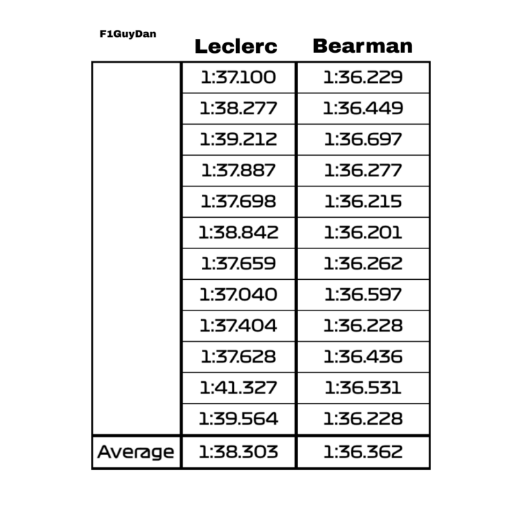 Singapur mal monopostu SF-25 vyhovovať, ale napokon dopadol katastrofálne. Charles Leclerc musel šetriť brzdy prakticky po celú dĺžku pretekov. Jeho trápenie najlepšie vystihlo porovnanie časov s Bearmanovými. V poslednom stinte bol Haas na podobne starých pneumatikách v priemere o dve sekundy rýchlejší.