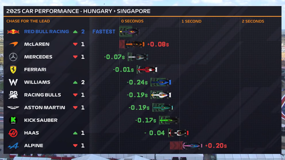 Uprostred piatkového tréningu nám réžia ponúkla výsledky analýzy z dielne Formuly 1, podľa ktorej má najrýchlejší monopost Red Bull. Stále sme však pri rakúskej stajni mali hviezdičku, keďže na posledných veľkých cenách sme jazdili na veľmi špecifických okruhoch. Austin je však z hľadiska testovacieho potenciálu oveľa hodnotnejšou traťou a Red Bullu sa zatiaľ na nej darí.