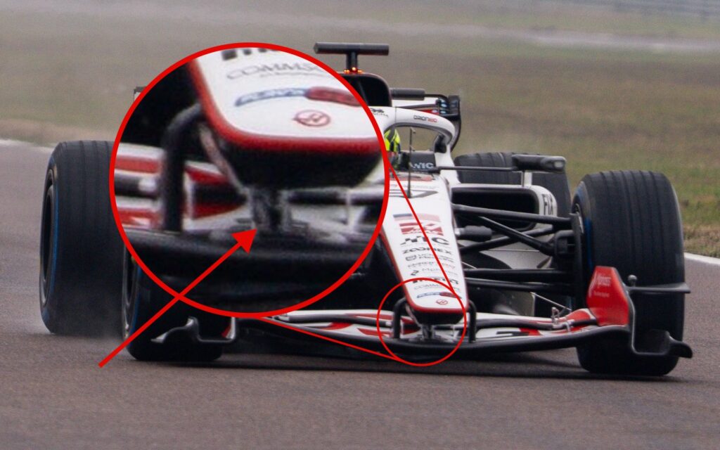 Haas si zvolil o niečo čistejšie riešenie a klapku na oboch stranách predného krídla ovláda spoločný člen pod nosovým kužeľom. Do tejto kategórie môžeme zaradiť aj riešenie Red Bullu, Alpinu a napokon Mercedesu, ktoré má však ešte dve zaujímavé novinky.