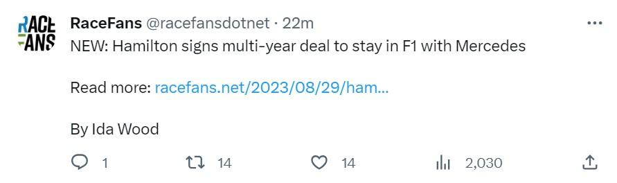 RaceFans sa ospravedlnil za chybu s vydaním článku o novej zmluve Lewisa Hamiltona: "Pred pár minútami sme omylom publikovali koncept článku, ktorý nebol hotový a informácie v ňom neboli overené... Koncept článku bol odstránený a ospravedlňujeme sa za našu chybu."