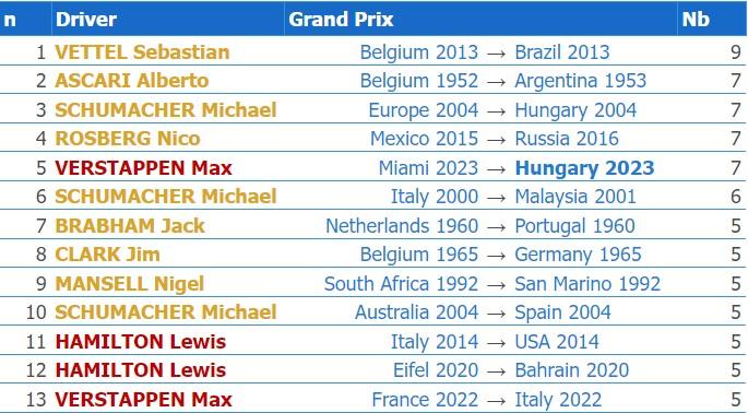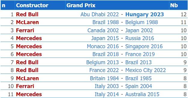 Z tohtoročnej sezóny sa stáva najväčšia dominancia v dejinách. Red Bull zvíťazil dvanásťkrát v rade, čo sa nikomu nepodarilo v 70-ročnej histórii Formuly 1.